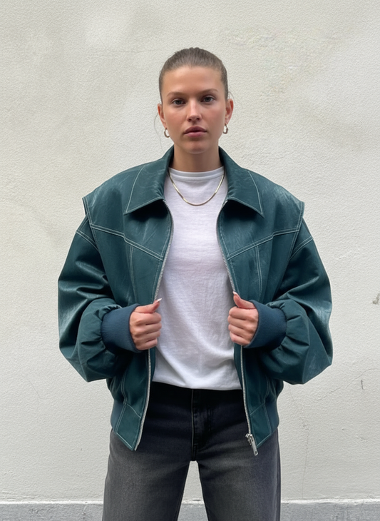 Vivien | Gedurfde Vegan Leren Bomberjas met Stikseldetails