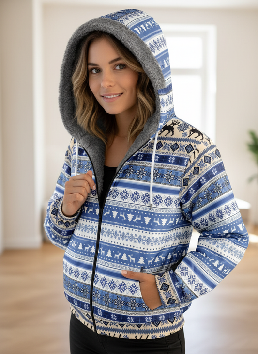 Sonya | Dames Fleece Jack – Relaxte Pasvorm – Tribaal Patroon