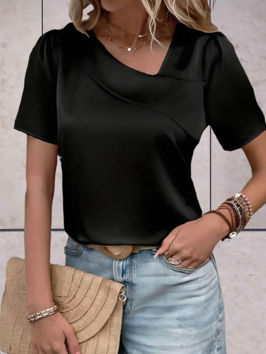 Tarja | Chique Satijnen Top met Asymmetrische Halslijn