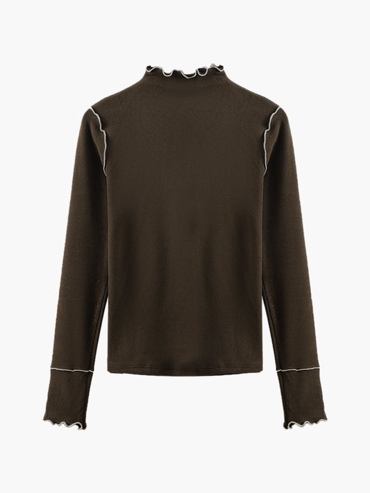 Sarina | Slim Fit Jersey T-Shirt met Hoge Hals – Warm & Stretchy