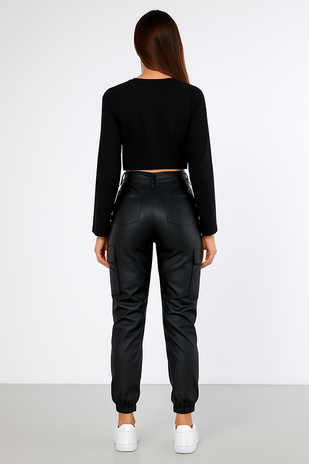 Voeg vandaag nog een dosis zelfverzekerde flair toe aan je garderobe met de Jazzlynn Faux Leather Cargo Broek β waar stijl en bewustzijn elkaar ontmoeten.