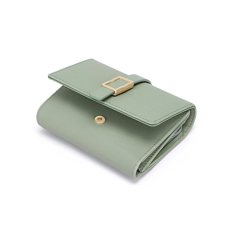 Voel de rust en georganiseerde luxe bij elke aanraking van deze verfijnde portemonnee. Dit korte damesmodel, uitgevoerd in een serene groene tint, belichaamt de essentie van stedelijke minimalisme en biedt u een moeiteloos chique gevoel tijdens uw dagelijkse bezigheden.