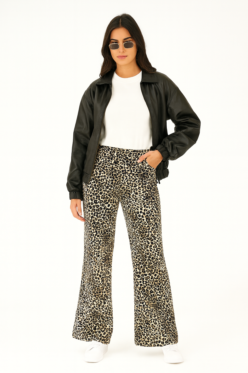 Laat je stijl spreken met de Julietta wijde leopard broek — een perfecte mix van speelse retro flair en moderne elegantie. De klassieke luipaardprint geeft je outfit direct karakter, terwijl de losse, wijde pijpen zorgen voor een nonchalante maar stijlvolle uitstraling.