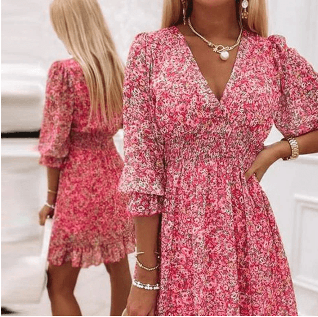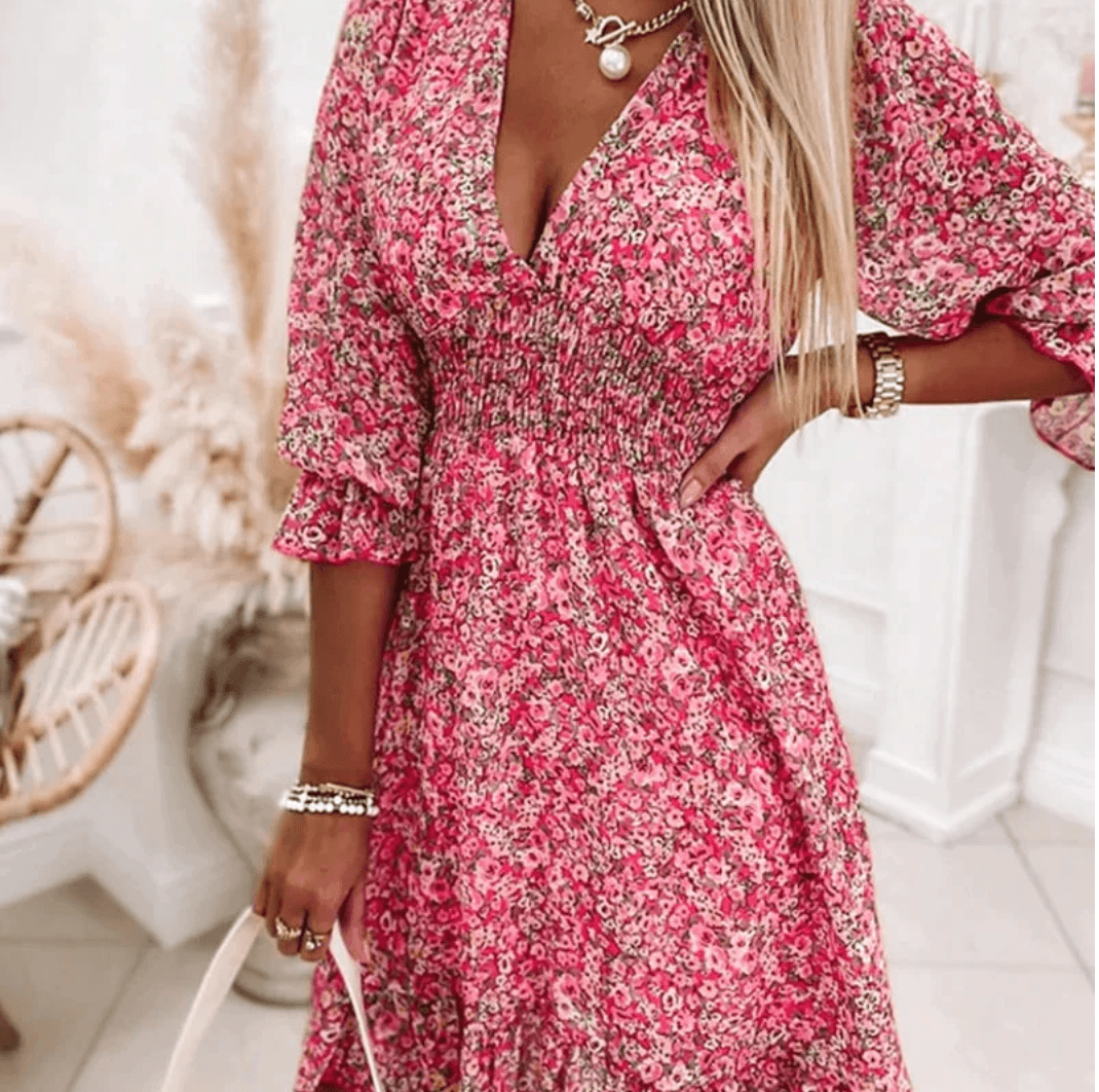KARIN – omarm kleur, comfort en vrouwelijkheid in één stijlvolle bloemenjurk.