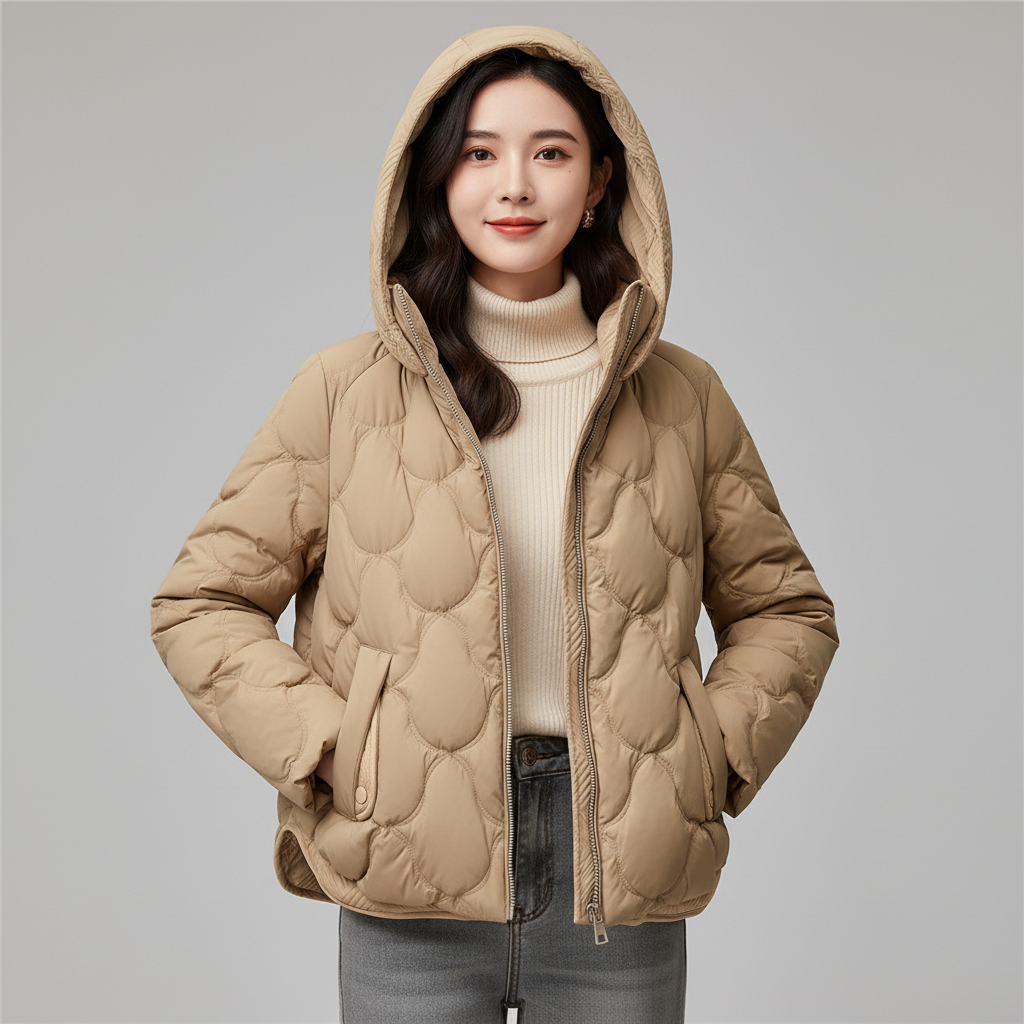 Kasey | Gewatteerde Dames Jas – Unieke Stiksels en Hoge Kraag