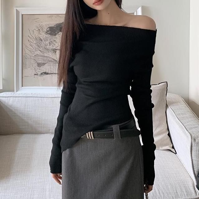 - ONTWERP: Elegante, schuine halslijn die één schouder blootlegt.