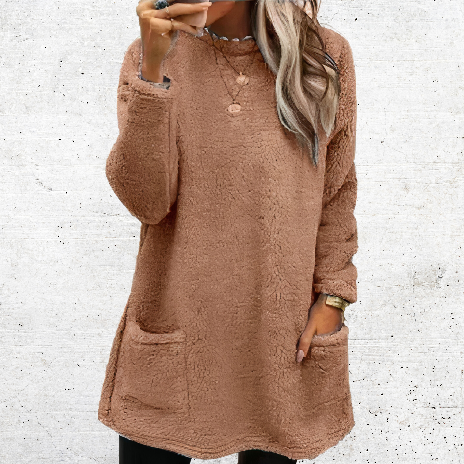 Voor de vrouw die comfort eist, maar stijl nooit loslaat – MARYSA is de tuniektrui die cosy zachtheid en urban luxe perfect combineert. Het ultra-zachte teddy fleecemateriaal voelt aan als een omhelzing, terwijl het lange, relaxte silhouet moeiteloos flatteert.