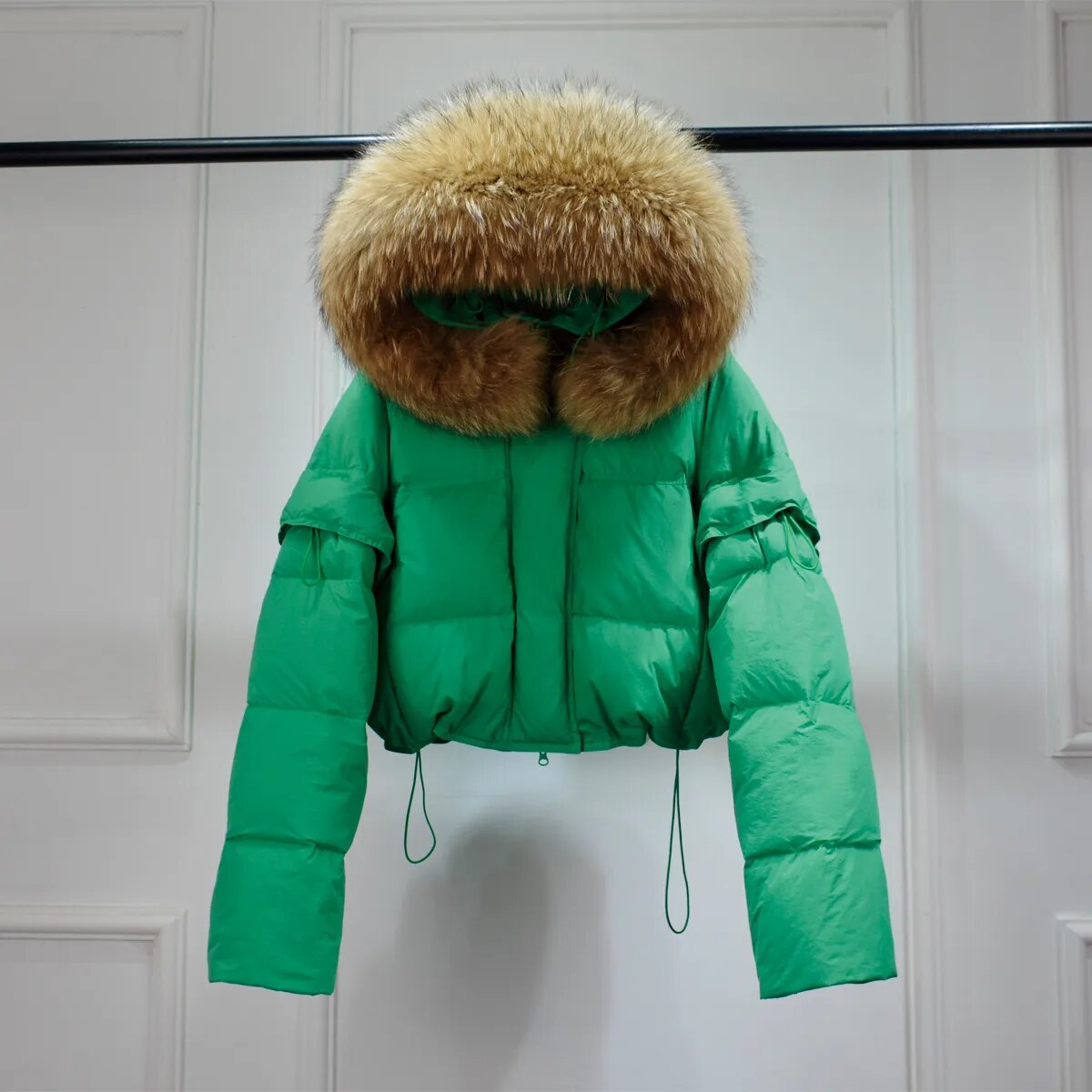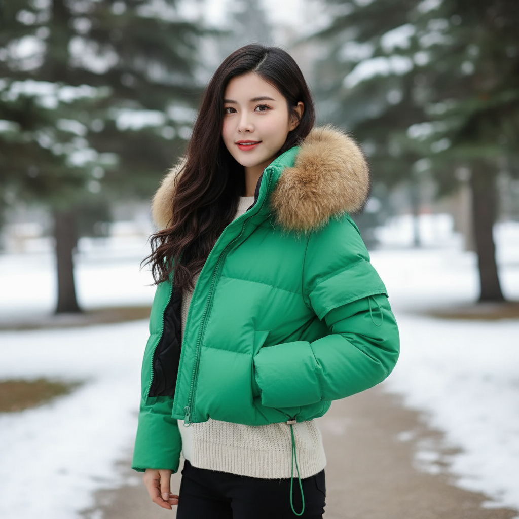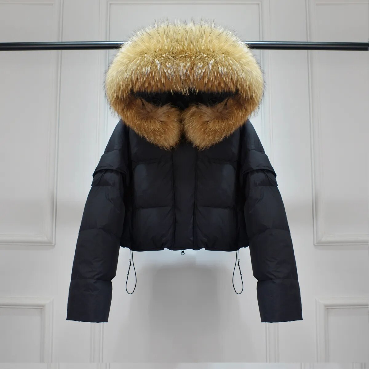 Deze jas combineert een modieuze, cropped silhouet met de ongeëvenaarde warmte van premium donsvulling, waardoor u zich moeiteloos chic en behaaglijk voelt tijdens elke winterse wandeling.