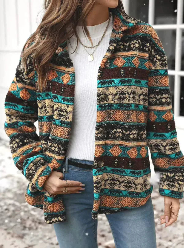 Sonya | Dames Fleece Jack – Relaxte Pasvorm – Tribaal Patroon